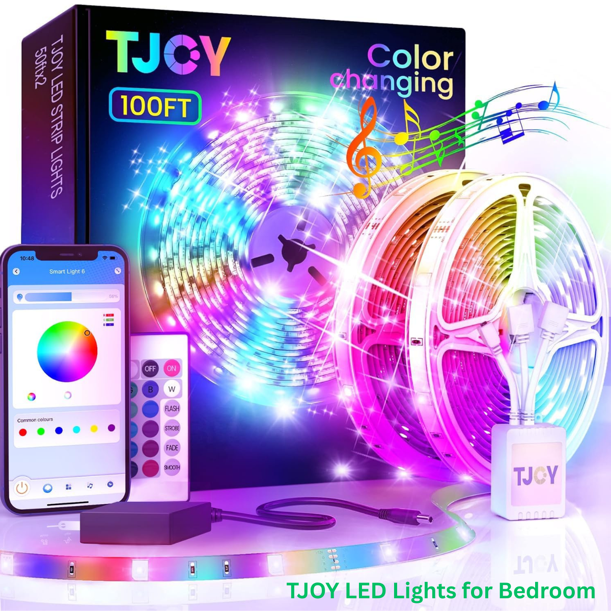 Transform your home with the TJOY 100ft LED Strip Lights, designed to create stunning ambiance with vibrant RGB colors and smart control features. These high-quality LED rope lights come with both Bluetooth App Control and Remote Control, allowing you to easily adjust brightness, colors, and lighting modes.